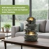 - This 4-tiered water fall table fountain with LED lights combines modern design, zen elements, and nature-inspired charm for a truly unique accent piece