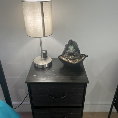 - PRODUCT DETAILS- Materials: Polyresin, Glass and Plastic. Includes River Rocks. Dimensions: (L) 6.5" x (W) 6.5" x (H) 7.25". Cord Length: 7 Foot. Color: Gray and Tan.