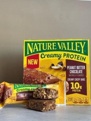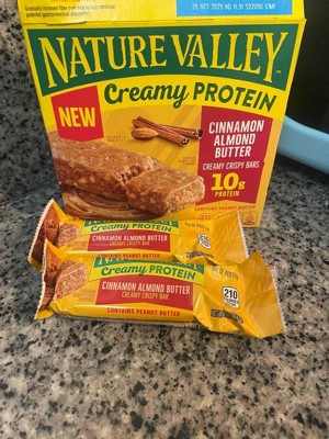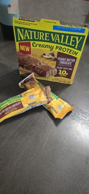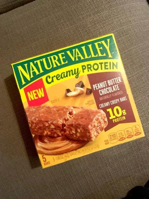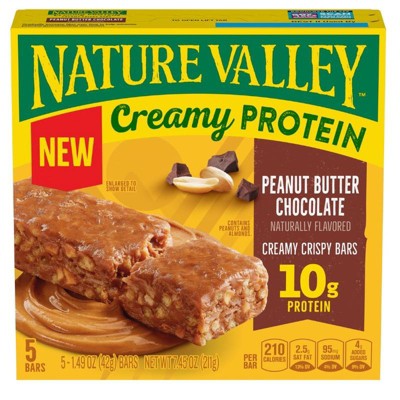- CONTAINS: One regular cardboard box of Nature Valley Creamy Protein Bars, Peanut Butter Chocolate, 5 Bars, 7.45 oz; Perfect for instant snacking