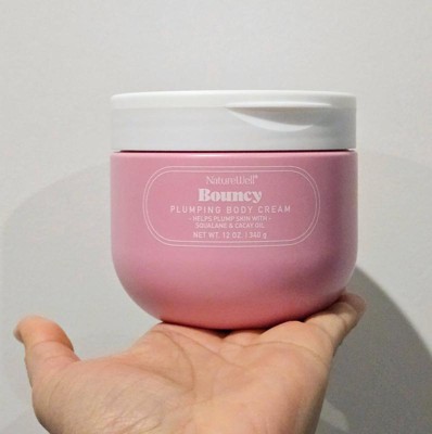 NatureWell Bouncy Plumping Body cream nourishes the skin, helping improving overall skin health. This bady cream helps with moisturizing and healing my dry winter skin. It is amazing and great quality and smells amazing. Would be buying again and again!
