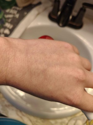 This does seem to make the skin more supple. I took pictures of my hands but I really only noticed a difference in my feet. I've been putting this on my feet and heels and my feet have been so soft! The smell from this is actually really pleasant and not overly fruity or citrusy. Will be buying again