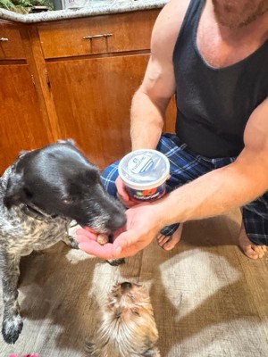 [This review was collected as part of a promotion.] These dog treats are so easy to carry with you when you’re training a puppy to go potty outside. After you take the seal off you would think they would go stale but they didn’t. And there’s a slight fragrance but not overwhelming.