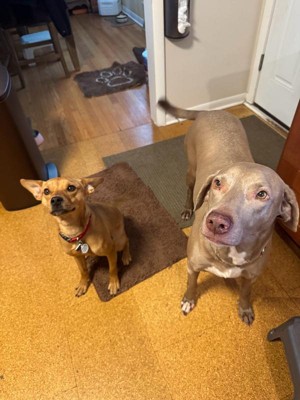 [This review was collected as part of a promotion.] These are my two dogs one is a smaller italian greyhound mix and the other is a weimeraner. They both look forward to having this added to their dinner every night like it is a treat! I love the healthy ingredients and feel like it has made my dogs coat shinier and softer! The vitamin itself is a small little nuggg that is like a treat and easy to give to them with a meal. I will continue to purchase this and feed it to my dogs!