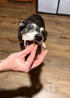 [This review was collected as part of a promotion.] I’ve been giving my pup the allergy supplement for about a week now, and everytime I pick up the bottle she goes crazy! Not only does she love the flavor but she’s been itching way less. She’s about 27 pounds and I give her a whole chew, she eats it right up like it’s a treat!