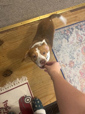 [This review was collected as part of a promotion.] My dog loved it, she eats them like nothing, not hard, the packing is great. My dog is happy eating this, I give her 3 the most because she is a big girl!