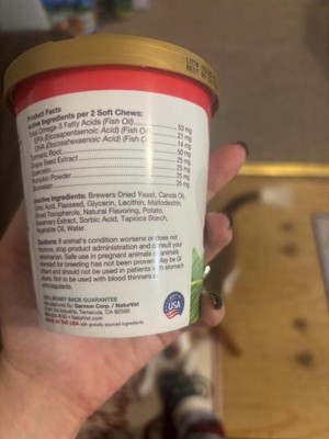 [This review was collected as part of a promotion.] Seems to be working! My dog often gets dry and flaky skin in the winter, but we started using this right when it started to get cold and we haven’t seen much flaking at all. Flavor seems to be enjoyable too, as we have had no problems getting him to eat them. I only wish they had different chews based on the weight of the dog. With my dogs weight, I am supposed to give him 6 chews a day which caused me to run out in a matter of days. It would be nice to have a the option of a higher dosage in each chew so I don’t have to give him so many each day.
