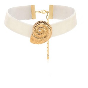 This modern take on the summer choker features a soft and comfortable velvet band. The centerpiece is a stunning 18k gold plated nautilus shell, adding a touch of ocean-inspired sophistication to this chic and stylish accessory.