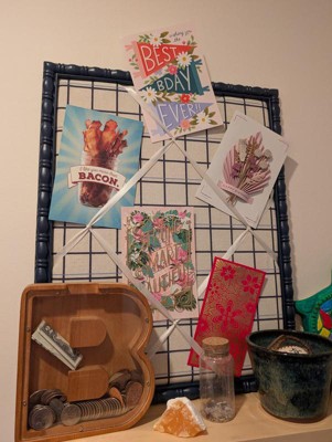We've been looking for the perfect addition to my office to display cards and this is it! I love looking back fondly on birthday, anniversary, and Mother's Day cards and was looking for something that allows me to display them that wasn't too big and this fit the bill. Super solid yet lightweight and love the attention to detail like the frame and that the cross hatch ribbon is tacked where the ribbons cross. Target knocked this one out of the park!