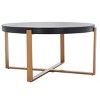 Treat yourself to the best of both worlds with the mixed media artistry of this Navya Coffee Table. Navya's open geometric base in a shining gold finish is cleverly juxtaposed with the natural wood grain of its black top, creating a striking statement piece for the living room or master suite.