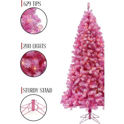 Product Name: NAYSAYE 5FT Artificial Christmas Tree Unlit Slim Pencil Tree with Foldable Metal Stand for Home Office Party Decor, Pink, 25.98"*25.98"*59.06"