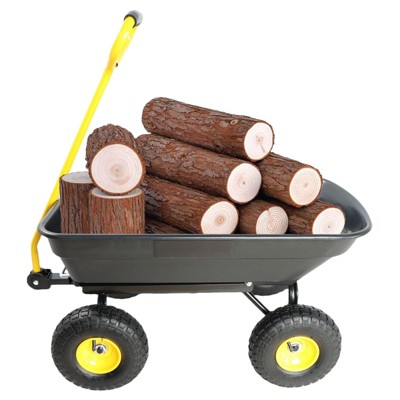 NAYSAYE Folding Garden Dump Cart Poly Body Steel Frame Pneumatic Wheels Large Capacity For Yard Work, Grass Green, 39.37"*18.9"*38.98"