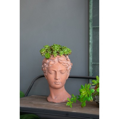 NAYSAYE Garden Decor Visage Head Bust Cement Planter for Indoor and Outdoor Display, Brown, 6.3"*5.9"*9.1"