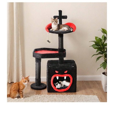 NAYSAYE Gothic Cat Tree Halloween with Spacious Cat Condo Brach Shaped Scratching Post Scratching Ladder Spider Toy for Indoor, Black, 57"*14"*57"