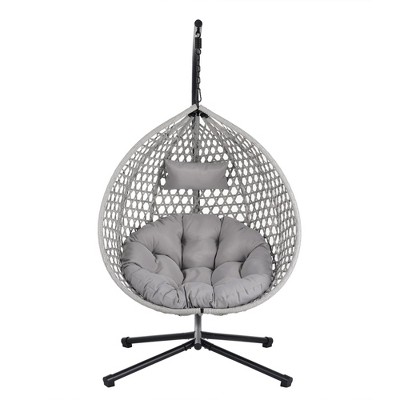 Product Name: NAYSAYE Patio Swing Wicker Egg Chair with Stand Comfortable Durable Design for Indoor and Outdoor Use, Gray, 38.6"*36.2"*76.8"