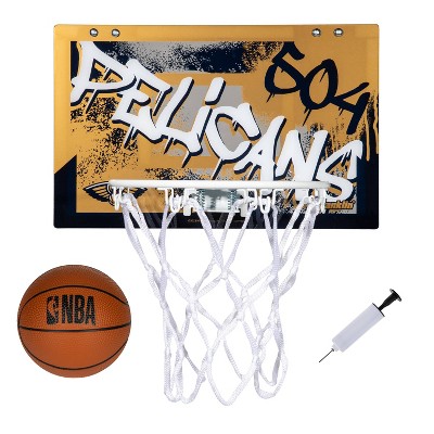 - FULL SET INCLUDED: This NBA set comes complete with (1) over the door hoop, (1) 5" mini basketball, and (1) air pump so you have everything you need to get the game started!