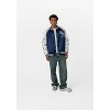 Step up your game-day look with the Minnesota Timberwolves Satin Bomber. Featuring a smooth satin shell and lightweight lining, this jacket combines streetwear edge with all-day comfort. Bold Timberwolves graphics on the front and back make your team pride stand out, while the classic bomber silhouette offers a versatile fit.