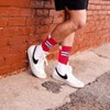 Tell everyone you’re a fan with these Brand-New Team Color Sublimated Logo Streak Crew socks. Featuring a shaped heel pocket for enhanced fit and Moisture Management keeps you cool and comfortable. Makes a perfect gift for the fan in your life. They are a fashionable way to show your team pride from head to toe. Fits Men's Shoe size 10-13 Comfortably (Size Large). Officially licensed with long lasting team logos, and colors, that won’t let you down! Made with Sustainable Sourced Materials. Machine washable, tumble dry low.