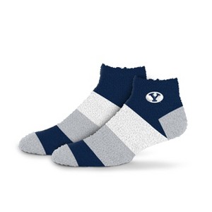 NCAA BYU Cougars Neapolitan Stride Fuzzy Socks: Multi-Stripe Knit Ankle Apparel - 1 of 3