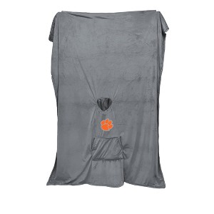 NCAA Clemson Tigers Logo Patch Faux Shearling Bloncho Blanket