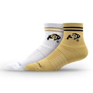 NCAA Colorado Buffaloes 2pk Socks: Crew Height, Cushioned Heel & Toe, Midweight Fabric