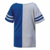 Meet the officially licensed Relaxed Fit Short Sleeve V-Neck Tee. This new style has so many details! Features team color and grey colorblocking, sleeve taping to give a sporty vibe, a fun printed design giving the effect of team pride patches, and exaggerated side slits. Don't miss out on suiting up your little girl in this unique pice of authentic sports fan gear.