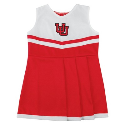 Your little one will be the cutest cheerleader in the crowd with this new Sleeveless Cheer Dress! This cheer dress is crafted from 100% polyester warp knit for durability and comfort and features an embroidered front chest team logo, showing off your family team pride. This officially licensed collegiate product adds flair to any little fan's wardrobe.