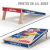 A tailgating go-to with a superfan spin! This cornhole game set wins on quality construction and performance. The regulation 2’x4’ all-wood board is 15mm thick and features striking team graphics printed directly on the surface for long-lasting durability. It’s what every game-day party needs!