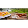 Get your grill game on with an officially licensed set of barbecue tools. The barbecue tool set includes a Sportula, a pair of tongs and a grill fork. Each tool is made from heavy-duty stainless steel with brass-riveted hard maple handles. Your favorite teams name is stamped on the hard maple handles and logo is laser cut through the blade of the Sportula. The Sportula and the fork both come with an integrated bottle opener. An unforgettable gift for any fan and the most noticed accessory at any tailgating event.