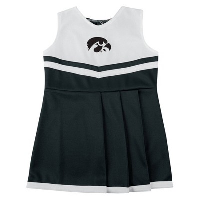 Your little one will be the cutest cheerleader in the crowd with this new Sleeveless Cheer Dress! This cheer dress is crafted from 100% polyester warp knit for durability and comfort and features an embroidered front chest team logo, showing off your family team pride. This officially licensed collegiate product adds flair to any little fan's wardrobe.
