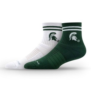 NCAA Michigan State Spartans 2pk Socks: Crew Height, Cushioned Heel & Toe, Midweight Fabric