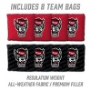 - Includes 2 boards and 8 regulation-size , 6"x6", 16 oz team bags (in 2 color versions)