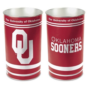 NCAA Oklahoma Sooners Waste Basket: Indoor Tin Trash Can, Open Top, 13-Gallon Capacity