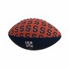 This Mini Rubber Football is small on size but big on spirit. Features alternating team color panels with two different official team marks on the top two panels. Made with rubber molded laces for strong grip and throwing accuracy. Take this mini rubber outside for a game of toss or keep in your office to show off your team spirit!