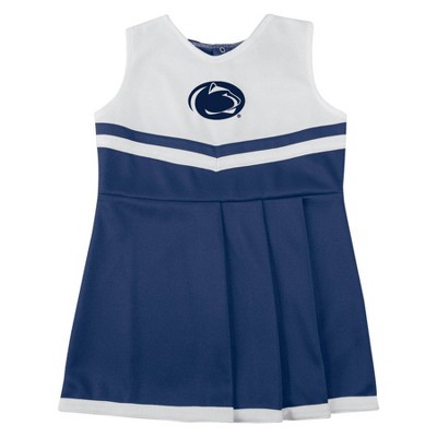 Your little one will be the cutest cheerleader in the crowd with this new Sleeveless Cheer Dress! This cheer dress is crafted from 100% polyester warp knit for durability and comfort and features an embroidered front chest team logo, showing off your family team pride. This officially licensed collegiate product adds flair to any little fan's wardrobe.