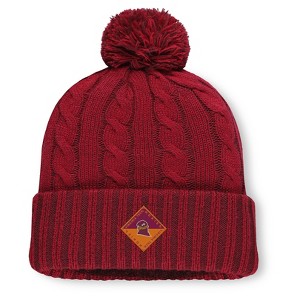 Stay warm and show your team spirit with the Saige Knit Cuffed Pom Beanie. Featuring a woven patch graphic on the front, this classic beanie adds a pop of team pride to any chilly day. The soft acrylic fabric keeps you comfortable, while the cuffed design and pom detail offer timeless style. One size fits most, and it's easy to care for with a machine wash and flat dry.