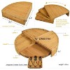 A great alumni gift, the Vienna Bamboo Charcuterie set swivels from an easy to store 9.5" wedge to a substantial 17" diameter, circular, multi level, cheese board with pull out cheese tool drawer. The ingenious design provides support to all levels when completely open, will impress guests when entertaining. Dimensions - 9.5" W x 3" H closed, 17" H x 17" W x 3" H open. Clever design provides a sturdy cutting surface on all level without any instability, hidden drawer on lowest level houses 3 stainless steel cheese tools. Hand Wash and Dry, Do Not Soak.
