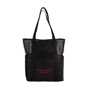 NCAA Wisconsin Badgers Black Mesh Tote: Polyester Sports Shoulder Bag