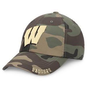 NCAA Wisconsin Badgers Camo Unstructured Washed Cotton Hat: Adjustable Camouflage Baseball Cap - 1 of 2