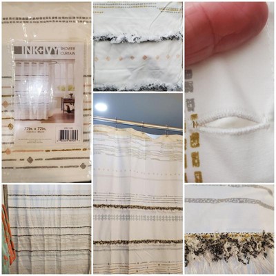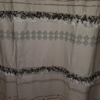 - Contemporary Boho style shower curtain measuring 72 x 72 inches