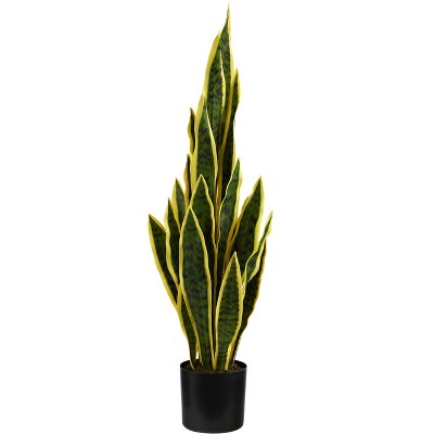 Shh.. this artificial snake plant is sure to complement your décor. Inspired by nature, staccato long fronds with naturally occurring detail arch upwards. If you're into a minimalist lifestyle, you will fall for this artificial plant. Assembled from high-quality materials, we guarantee this piece will last. Standing 23in. from a black nursery planter, house in any table that needs a touch of green. Perfect for an office, living room, or bedroom. Artificial plants are manufactured using synthetic materials, such as polyester material or plastic, and are well designed and constructed to be life-like in appearance. This item will need to be re-shaped when removed from the secure box to allow it to reach its fullest size. Your artificial plant will look beautiful for years to come; simply wipe clean with a soft dry cloth when needed.