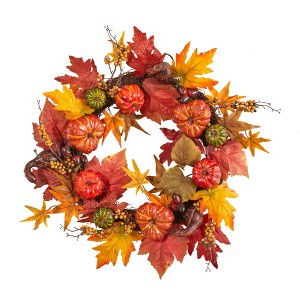 Nearly Natural 24-in Autumn Pumpkin and Berries Artificial Fall Wreath