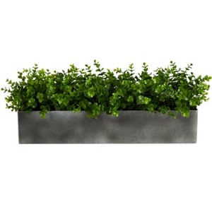 Add a horizontal touch of green to your living areas with this Eucalyptus Artificial Plant. Lifelike, green Eucalyptus leaves are housed together in a decorative planter for a crisp, clean look. If you're looking to update your office, look no further. This faux plant brings an elevated and sophisticated look that requires zero maintenance or upkeep, allowing you to focus on what matters. Measures 25" in width from a grey planter, curate in any desktop that needs some greenery. Silk plants are manufactured using synthetic materials, such as polyester material or plastic, and are well designed and constructed to be life-like in appearance. This item will need to be re-shaped when removed from the secure box to allow it to reach its fullest size. Your artificial plant will look beautiful for years to come; simply wipe clean with a soft dry cloth when needed.