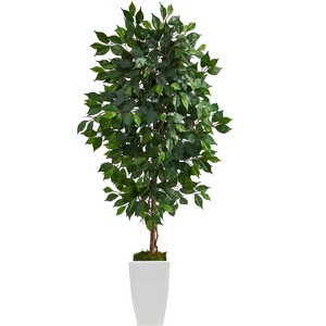 Nearly Natural 4.5-ft Ficus Artificial Tree in White Metal Planter