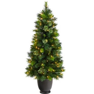 Nearly Natural 4.5-ft Oregon Pine Artificial Christmas Artificial in Decorative Planter with 250 Bendable Branches and 100 Warm White Lights