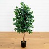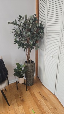 Regal in stature and interesting to the eye, this 4' Ficus Tree will command attention wherever you place it. One of nature's prettiest trees, the strong trunks twist upward, where they culminate in a sea of green leaves (504 in all!) Standing a full 4' tall, this majestic specimen is the perfect piece to grace an entryway - in fact, place one on each side for an incredibly grand statement. Comes in a black pot with faux soil.