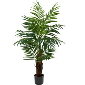 The classic palm tree look, forever captured for your decorating pleasure. This Areca palm tree is four feet in height, with a robust trunk and hundreds of pointed palm leaves that will bring a little sunshine to any area of your home or office. Never needs water or sun, so it truly becomes a "set it and forget it" piece of décor.