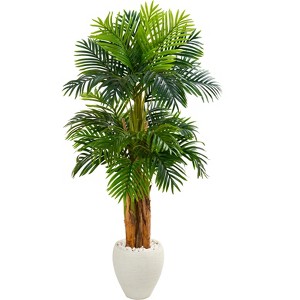 Nearly Natural 5.5-ft Triple Areca Palm Artificial Tree in White Planter