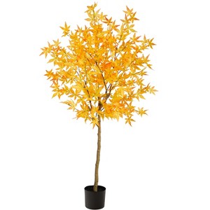 Remind yourself of the most spectacular foliage in the world with this Maple Artificial Tree. Inspired by the Northeast's landscape, bring the fall foliage home by injecting vivid colors in your space with these lifelike maple leaves crafted from high-quality materials. Standing 5' from a nursery planter (included in height), house in any compact area. Perfect for Thanksgiving, living rooms or a fall-inspired room.