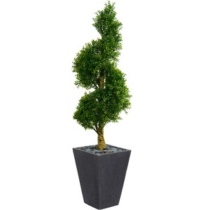 Nearly Natural 5-ft Boxwood Spiral Topiary Artificial Tree in Slate Planter UV Resistant (Indoor/Outdoor)