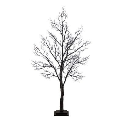 Welcome the scary season with this Halloween-inspired twig tree that'll delight any goblin. Inspired by nature, feel like you're walking along Salem's picturesque autumn season on a crisp day. Crafted from high-quality materials, feel free to shape the branches for a custom look. 102 pre-strung multicolored LED lights create a cozy show and you can alternate between purple and orange lights by pressing a button on the plug-in base. This creates a spooky feel perfect for your dream haunted house. The LED lights create a centerpiece that sets the mood for a hauntingly delightful atmosphere and the shaping is your hocus pocus time to shine. The energy-efficient lights save you both time and money on the electric bill. Standing 5' from a sturdy black base, it adds an eerie and enchanting touch to any space.